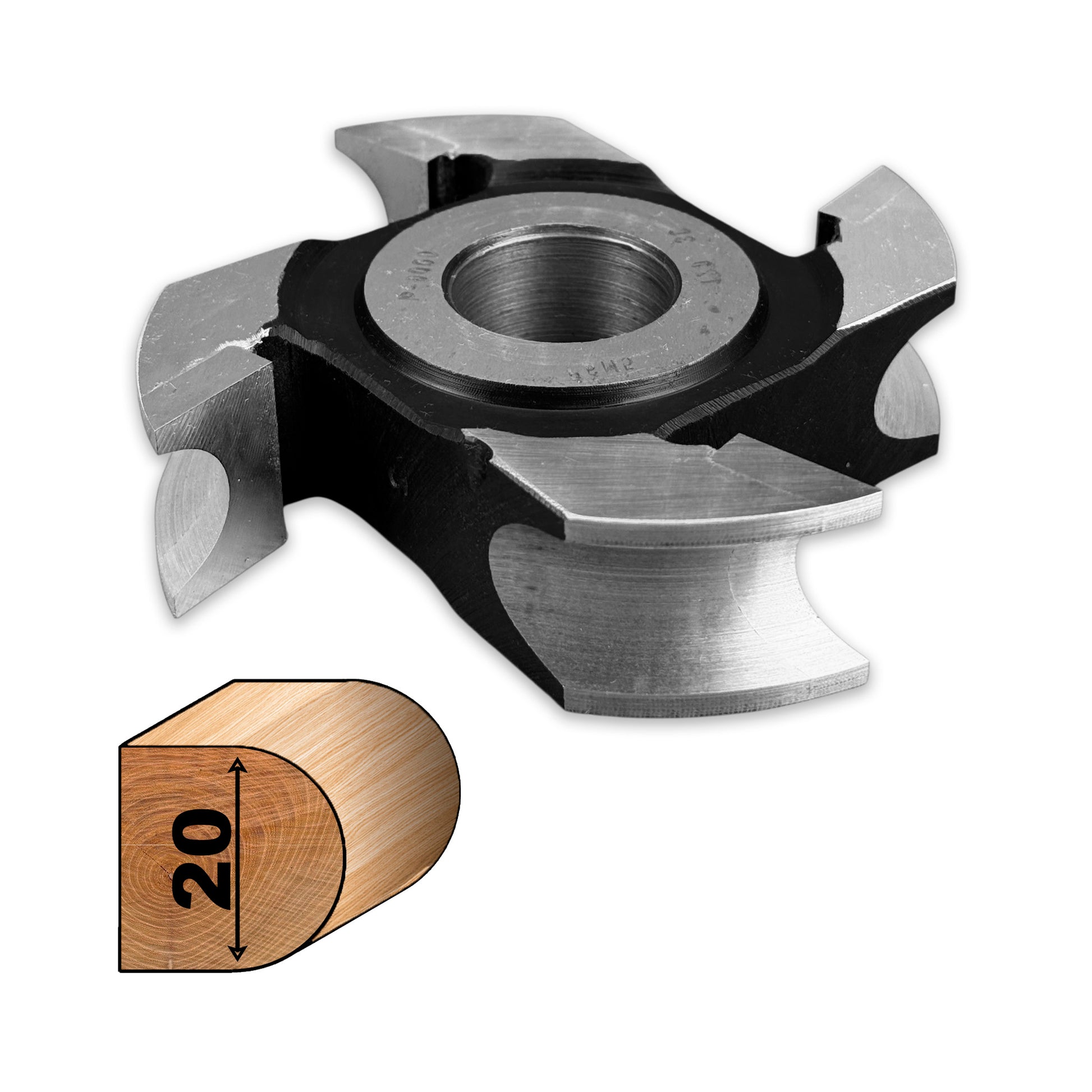 Професійна фреза для заокруглення дерев'яних країв, з увігнутим профілем R10 (радіус 10 мм) та робочим простором 20 мм. Ідеально підходить для створення рівномірних криволінійних країв на меблях, сходах, рамах або декоративних елементах. Міцна конструкція, з 4 напаяними зубцями HSS M2 (6,5% вольфраму).